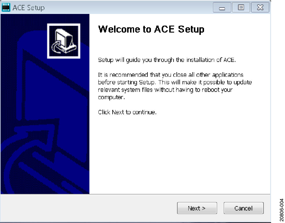 • Launch the ACE software from the ACE subfolder in the Analog Devices folder in the All Programs menu.