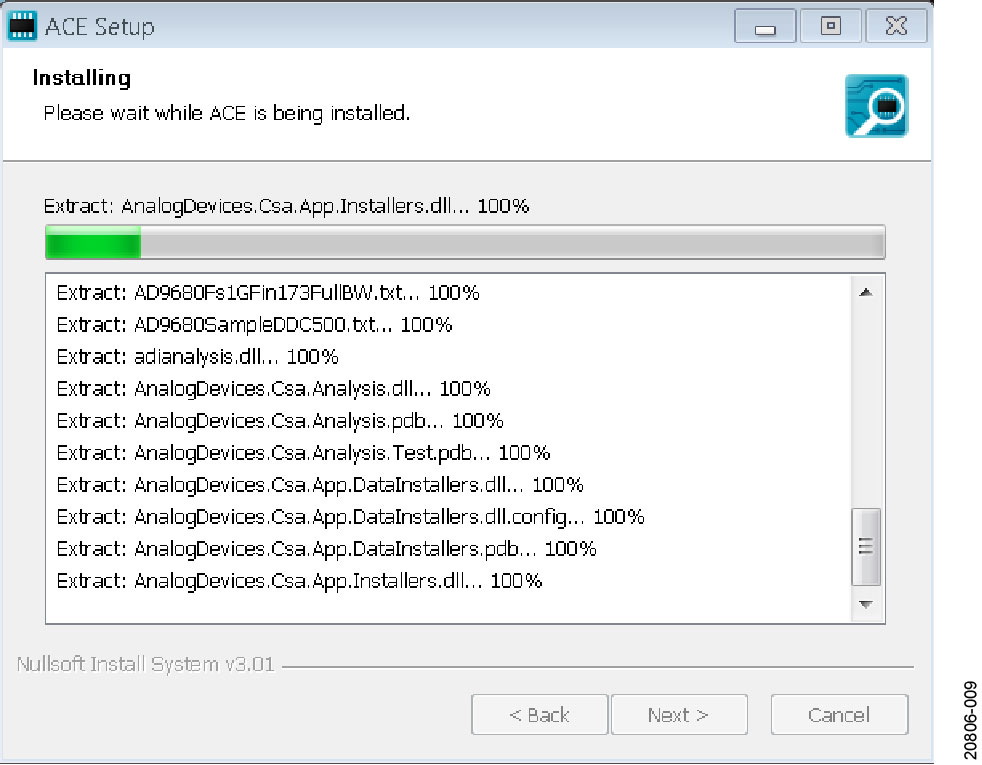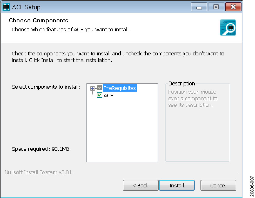 • Download and install the ACE software, which is available on the AD7380-4 product page. Installation details are found on the internal label of the EVAL-AD7380-4FMCZ box. Ensure that the SDP-H1 board is disconnected from the USB port of the PC when installing the ACE software. The PC may need to be restarted after the installation.