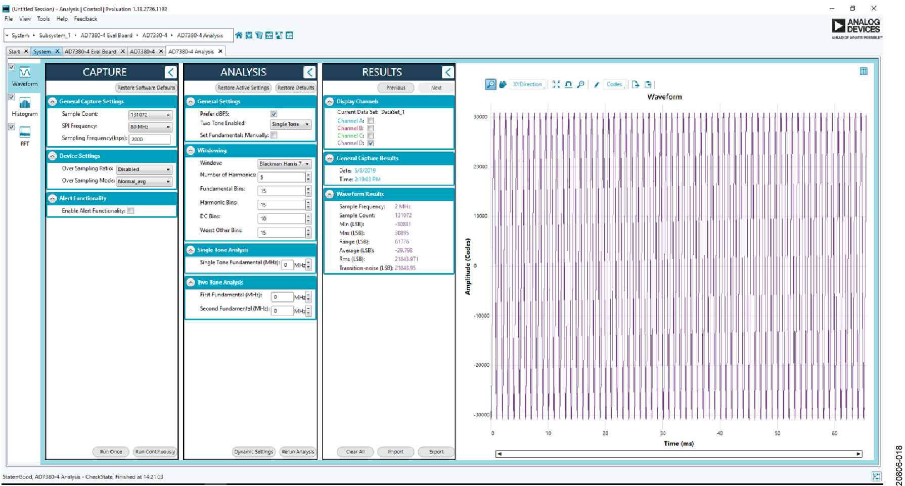 • Double click the AD7380-4 Eval Board icon to open the window shown in Figure 13.