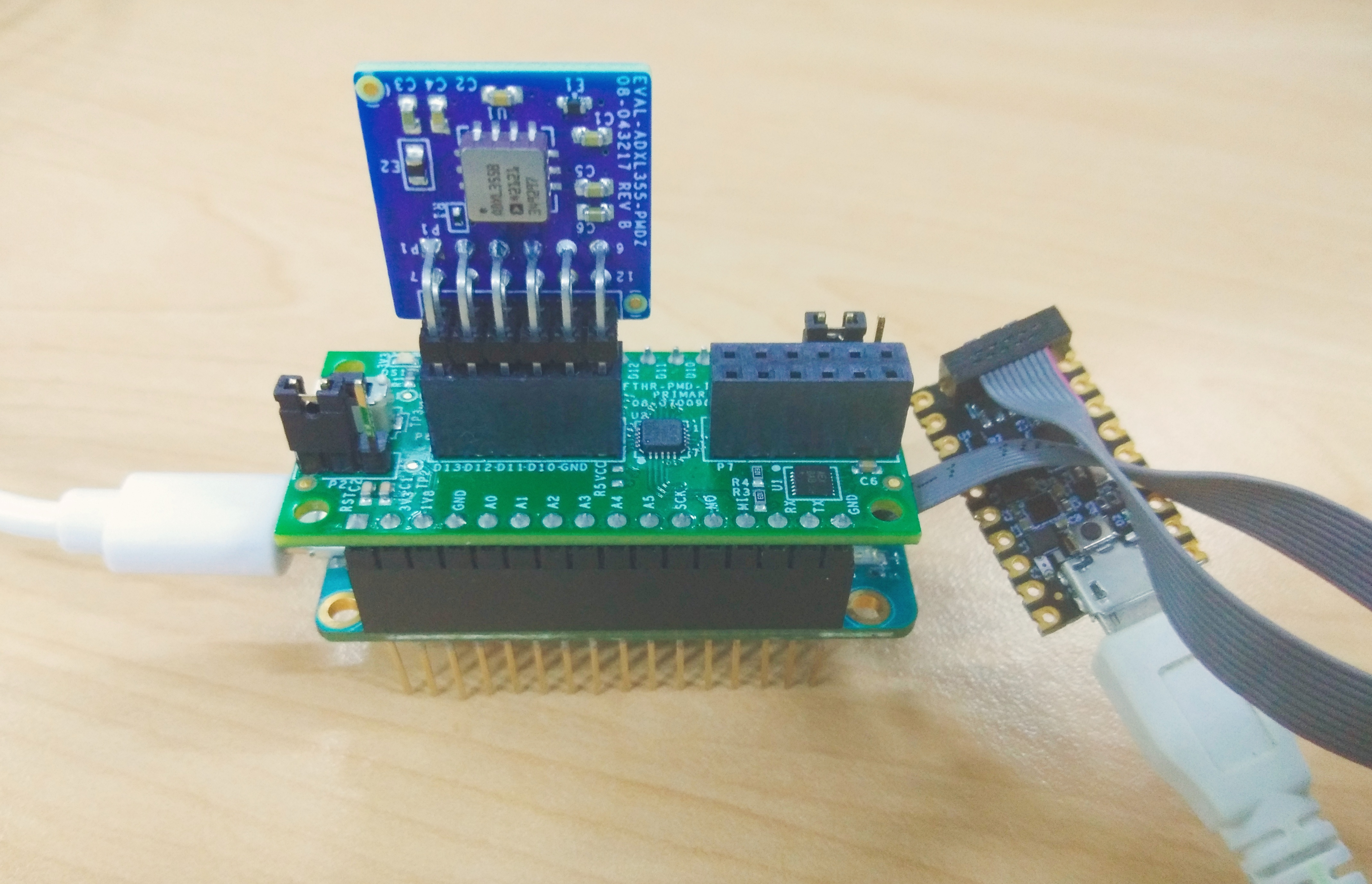 The EVAL-ADXL355-PMDZ can be used with the MAX32655FTHR or MAX32650FTHR.