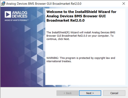 With the hardware connected and the AD-APARD32690-SL connected to the PC, open the BMS Browser.