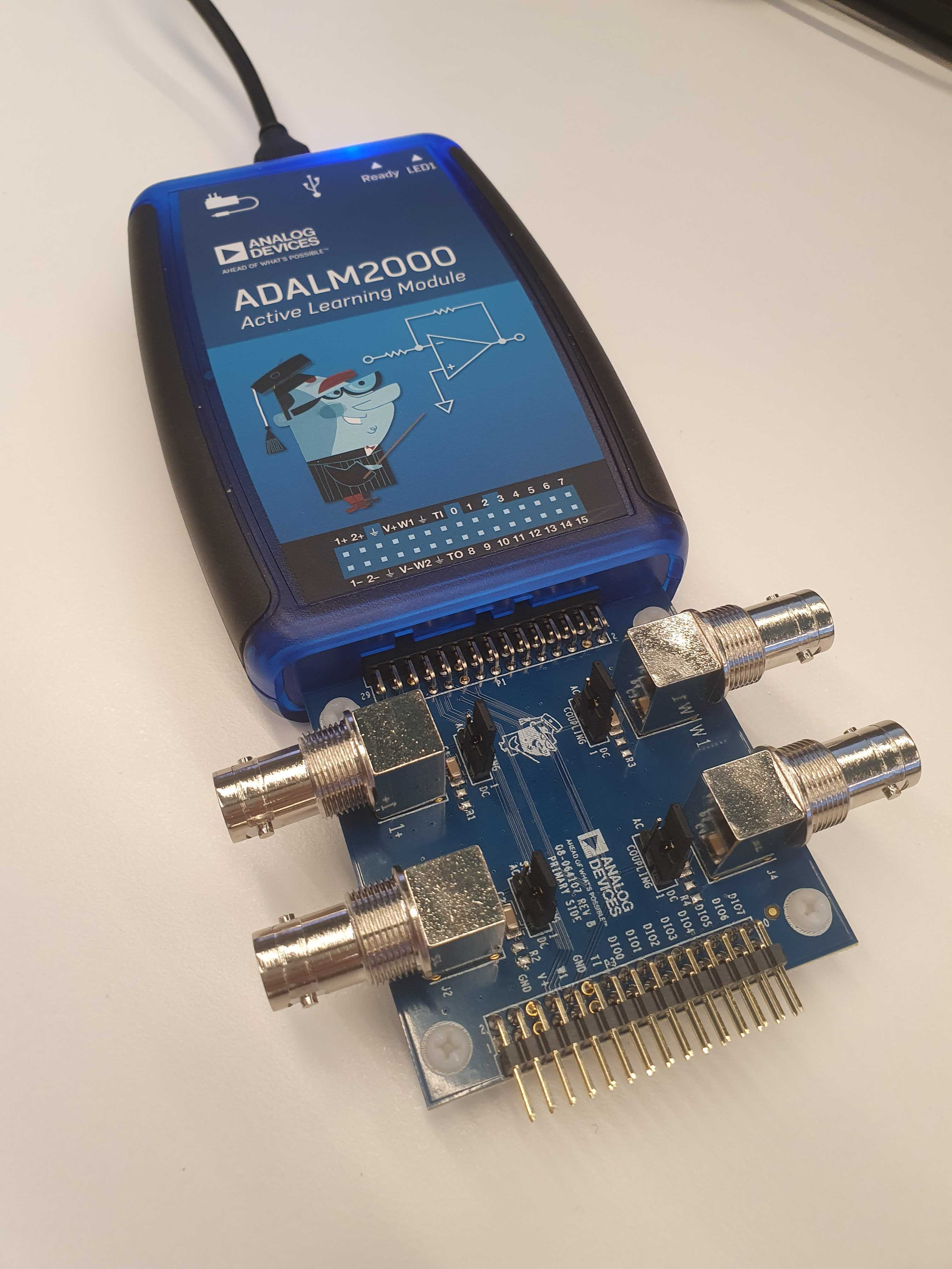 The BNC adapter board is simply plugged into the ADALM2000 and can be used straight away. It does not need any supply or additional circuitry.