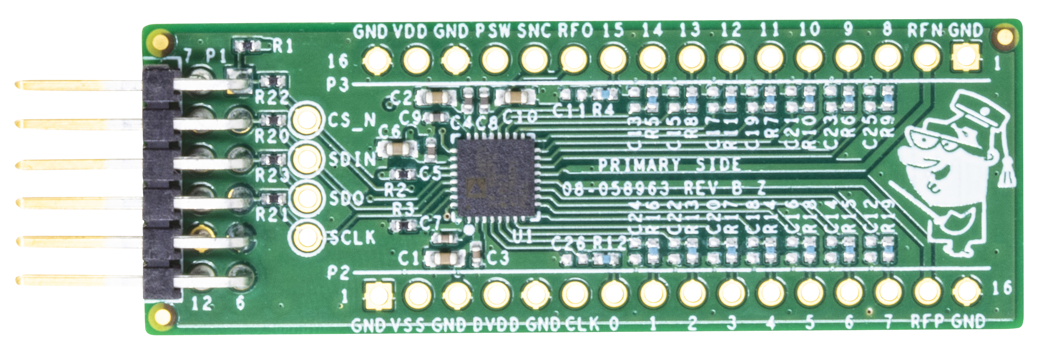Also, four test points are available to probe the SPI interface.